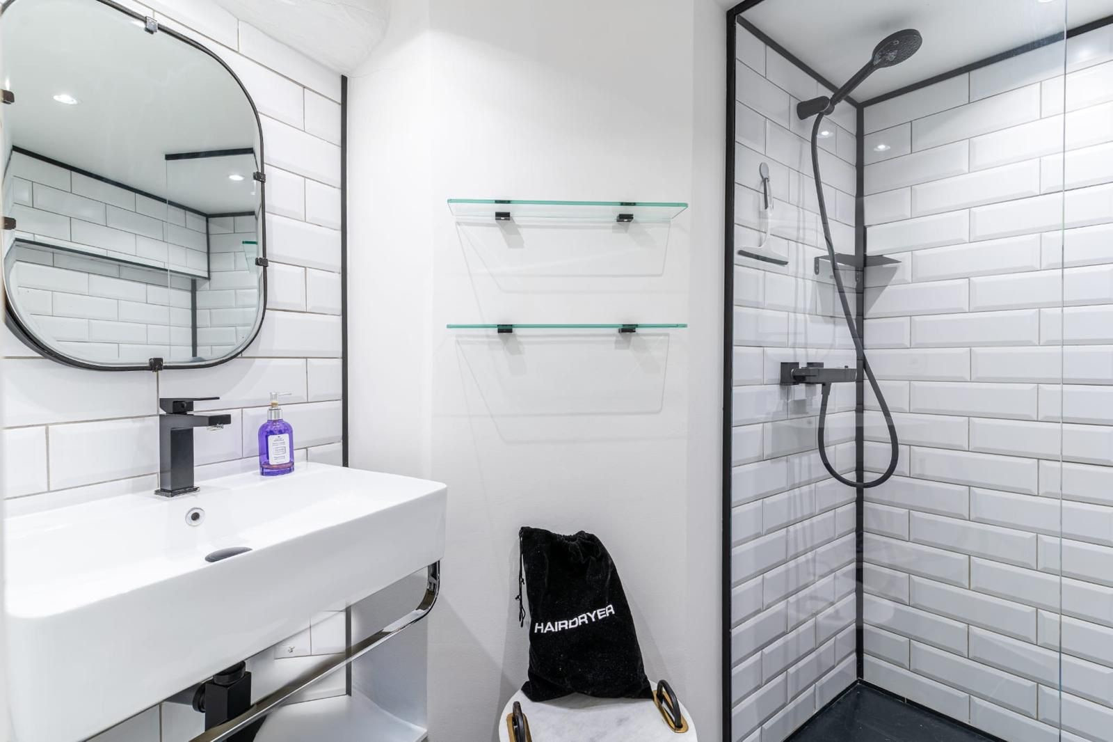 Bathroom 🚿: Relax in a bathroom with walk-in shower, washbasin, and washing machine 🧺. Separate WC 🚽 for added comfort.