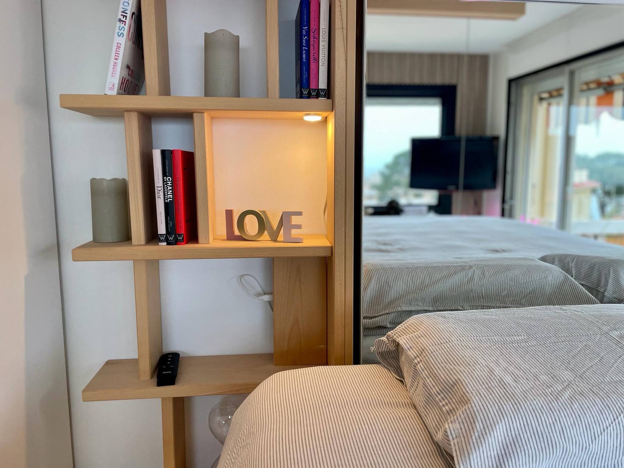 The apartment has a sofa seating area; an open kitchen perfectly equipped to concoct small dishes, a shower room with window, a small outdoor balcony to take the air and the sun, and the highlight of the show: you yourself will transform this place of life into a beautiful bedroom by going down the comfortable 160x200 bed from the ceiling.